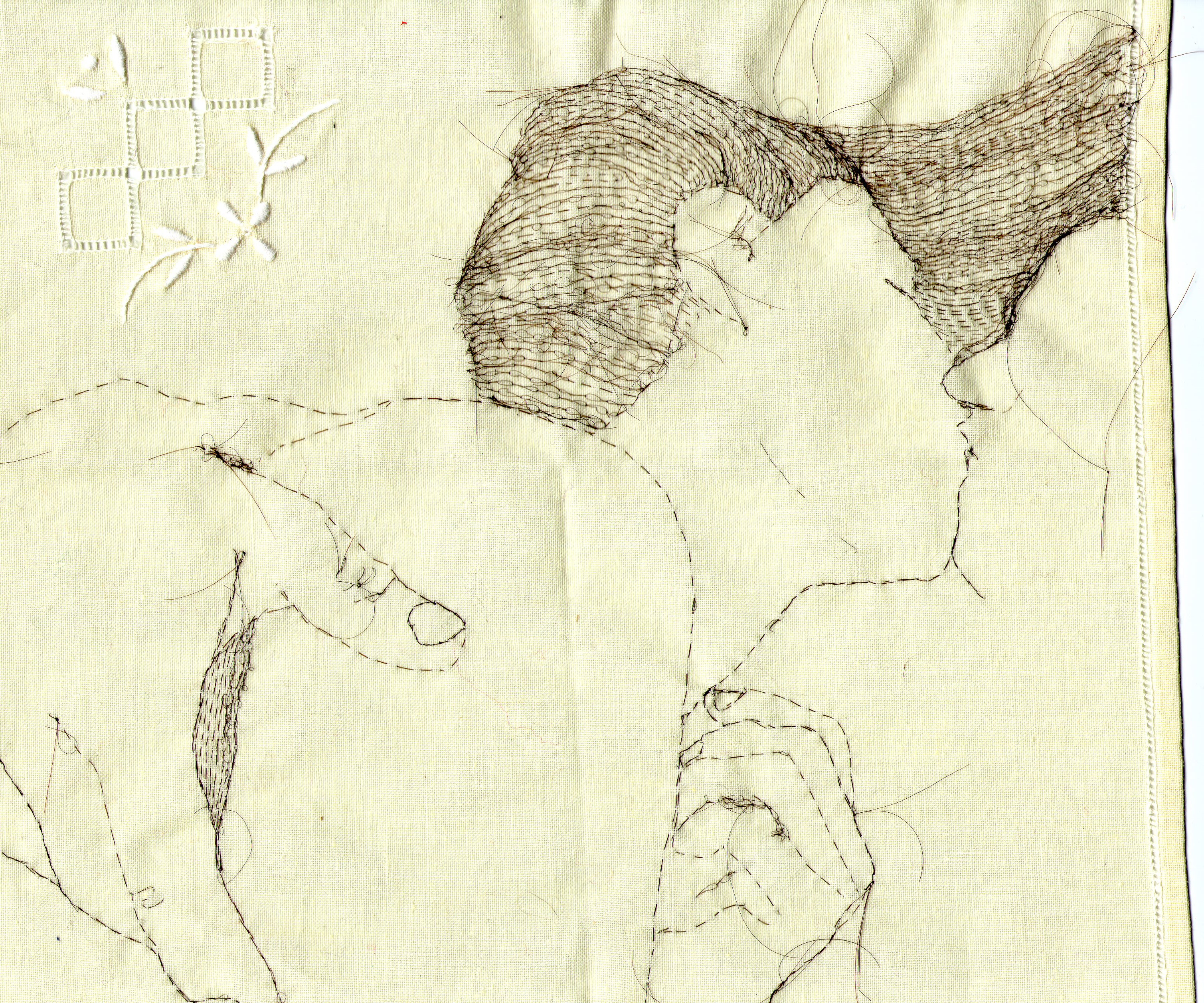 broderie BRODERIE / EMBROIDERY La peau cousue, 2014. Cheveux sur mouchoir en tissu, 25 x 25 cm . La peau cousue, 2014. Cheveux sur mouchoir en tissu, 25 x 26 cm. . Emilia, 2012. Cheveux sur mousseline, 25 x 30 cm Like Loading...