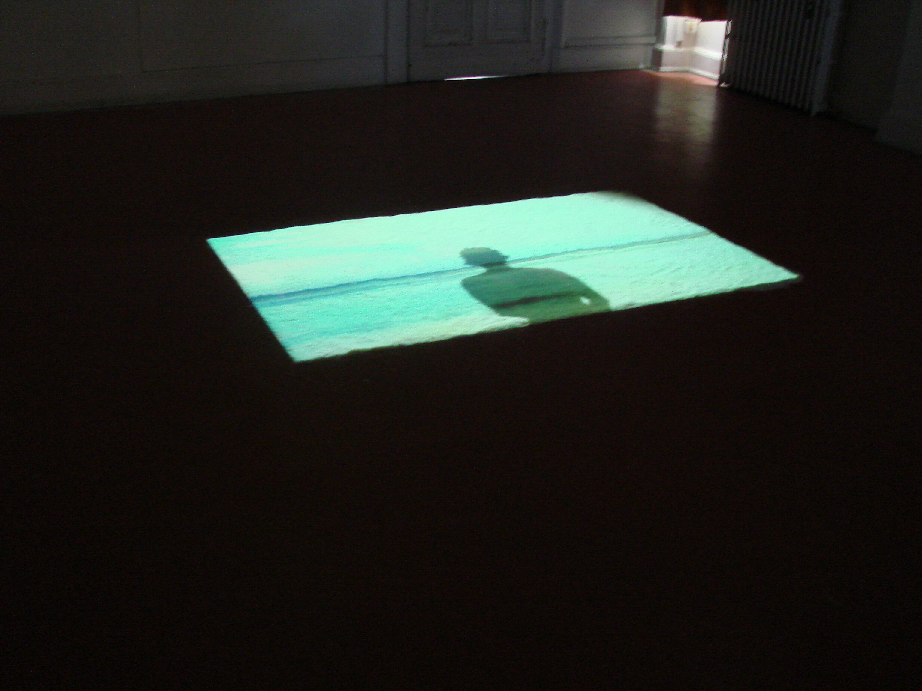 Installation vidéo. Projection vidéo sur 15 kg de riz. Durée de la vidéo : 4 minutes 19 sec., en boucle.